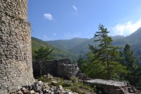 Mury zamkowe wzniesiono trochę później, około XIV wieku. Jego kamienna struktura oddzielała trwale zamek właściwy od przygródka oraz domu mieszkalnego, który był umiejscowiony po przeciwległej stronie od wieży. był on dwukondygnacyjny, z górną przeznaczoną na mieszkania. Południowa część muru posiadała bramę wjazdową. Od wschodniej strony, przy drugim wejściu, znajdował się również wał ochronny oraz sucha fosa, która oddzielała zamek od pozostałej część wzgórza. Wieża miała oprócz zadań obronnych dla domu mieszkalnego również funkcję obserwacyjną na dolinę Popradu i traktu popradzkiego - najkrótszego szlaku z Polski na Węgry.